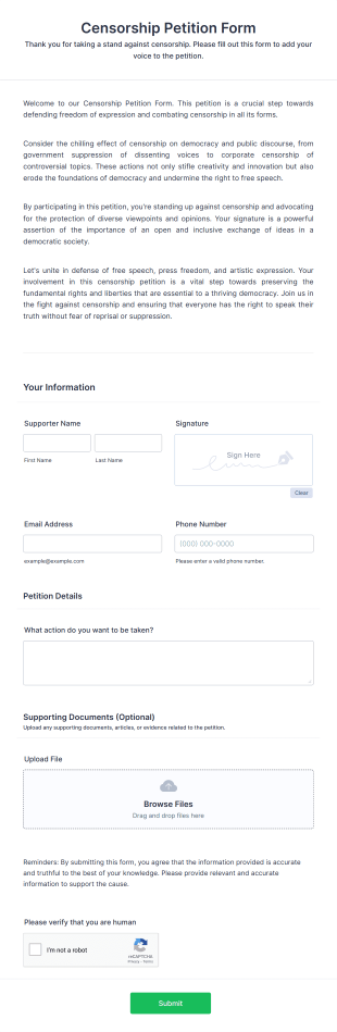 This AI Agent can be applied across various contexts where gathering support against censorship is crucial. Potential use cases include: