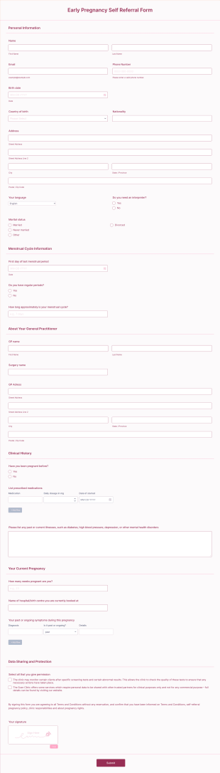This AI Agent serves to streamline the self-referral process for early pregnancy care. By transforming traditional forms into engaging conversations, it helps individuals provide essential information effortlessly while addressing their questions and concerns. This innovative approach not only enhances user experience but also reduces the workload for healthcare providers, allowing them to focus on delivering quality care.