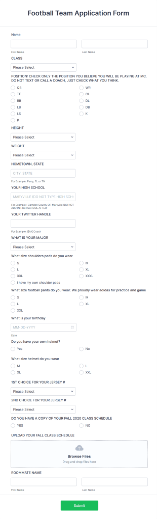 This template is beneficial for anyone involved in managing football teams, from coaches to athletic directors. It empowers organizations to collect vital information efficiently while enhancing the applicant's experience. Key users include: