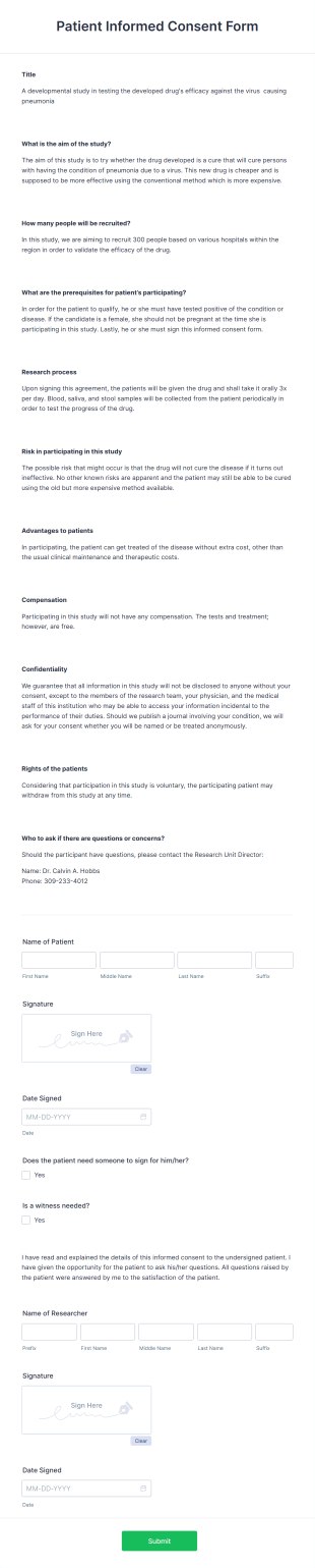 This AI Agent collects vital information such as patient names, signatures, and dates signed, ensuring that all necessary consent documentation is properly recorded. It also allows for the inclusion of detailed explanations about the study or procedure, ensuring patients are well-informed before consenting. The ability to customize the agent's appearance and conversation flow enhances the overall patient experience, making the process more engaging and less intimidating.