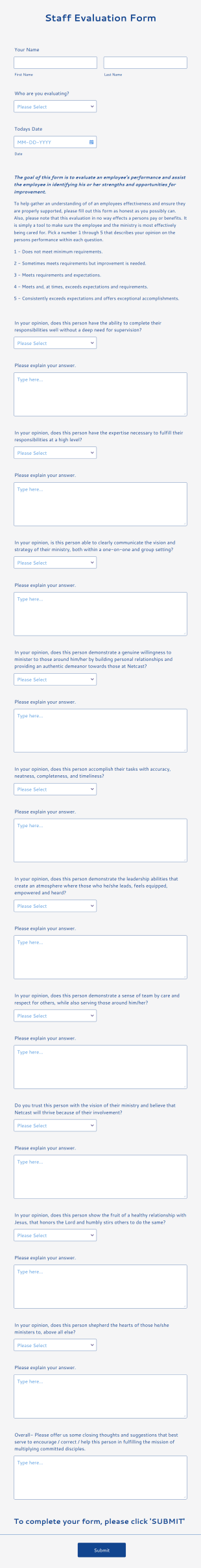This AI Agent collects data such as employee names, evaluation dates, and performance ratings across various criteria. It allows evaluators to provide detailed explanations for their ratings, creating a comprehensive feedback mechanism. The agent’s customizable features enable organizations to tailor the evaluation process to their specific needs, ensuring that all relevant aspects of employee performance are covered.