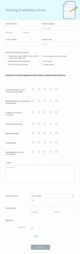 Writing Evaluation Form