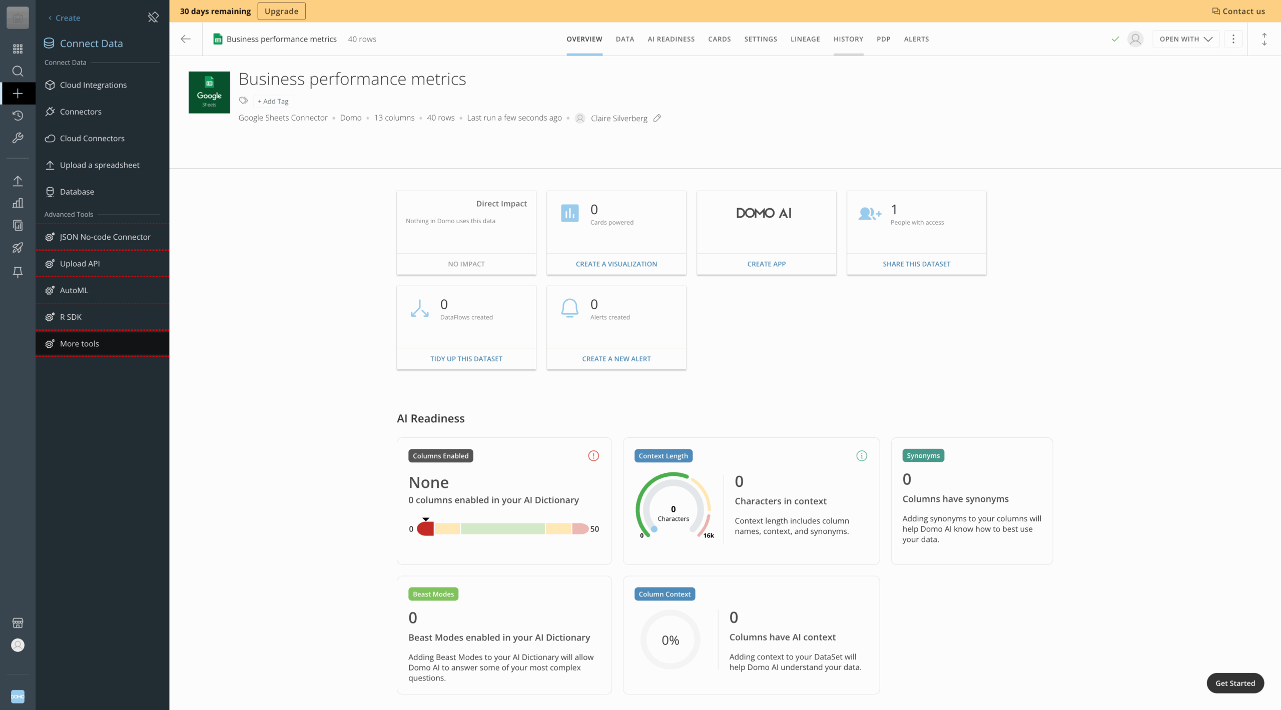 For me, Domo is the front-runner business intelligence platform for users looking to maximize their data analysis with AI. I will say that I didn’t find this platform to be the most beginner-friendly, but for those with modest data analysis experience, Domo can be extremely powerful.