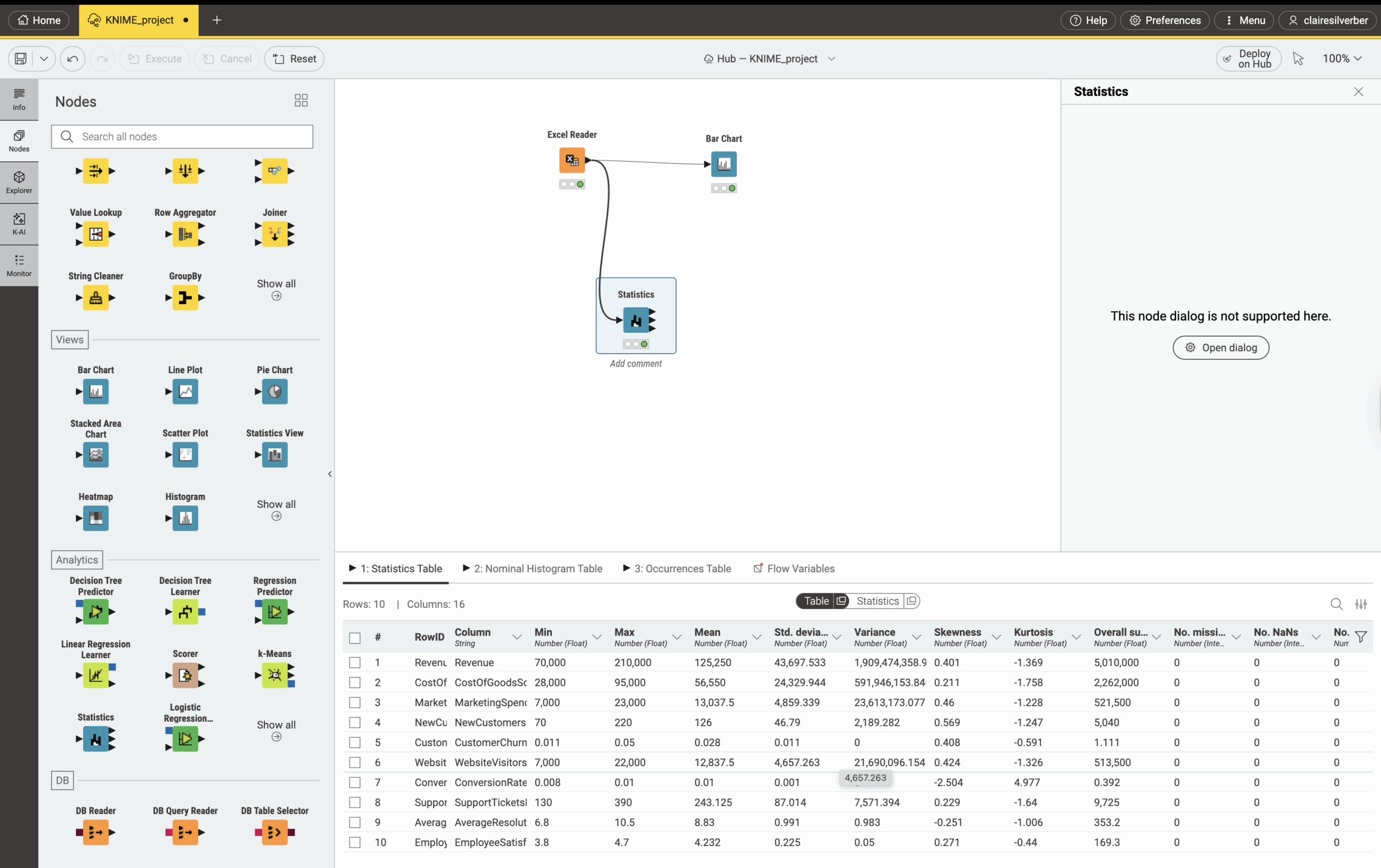 Truthfully, I had to test another, slightly simpler node-based tool before I could do anything on KNIME. It’s not the most beginner-friendly tool, but it’s very customizable and powerful for more seasoned data professionals. For example, users can build sophisticated analysis pipelines and connect pre-built nodes for different functions.