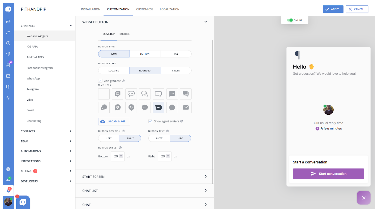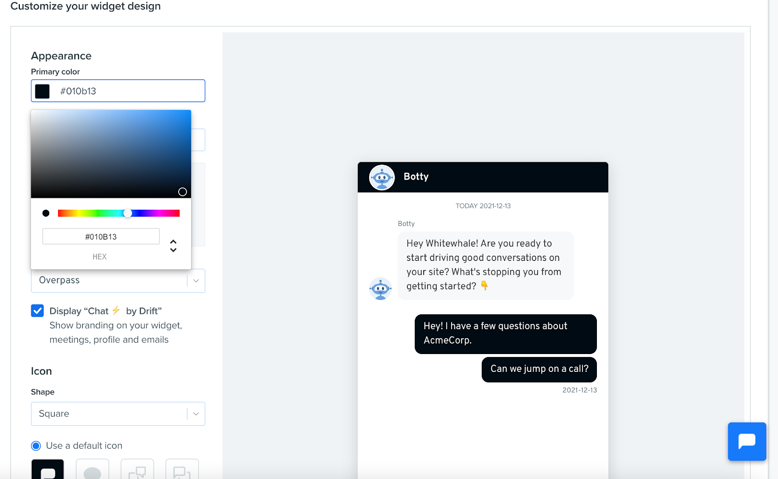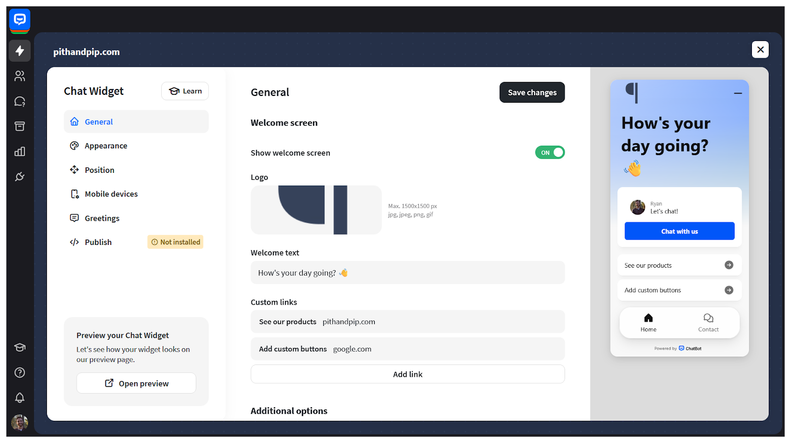 - Icon uploads for opening your chatbot widget