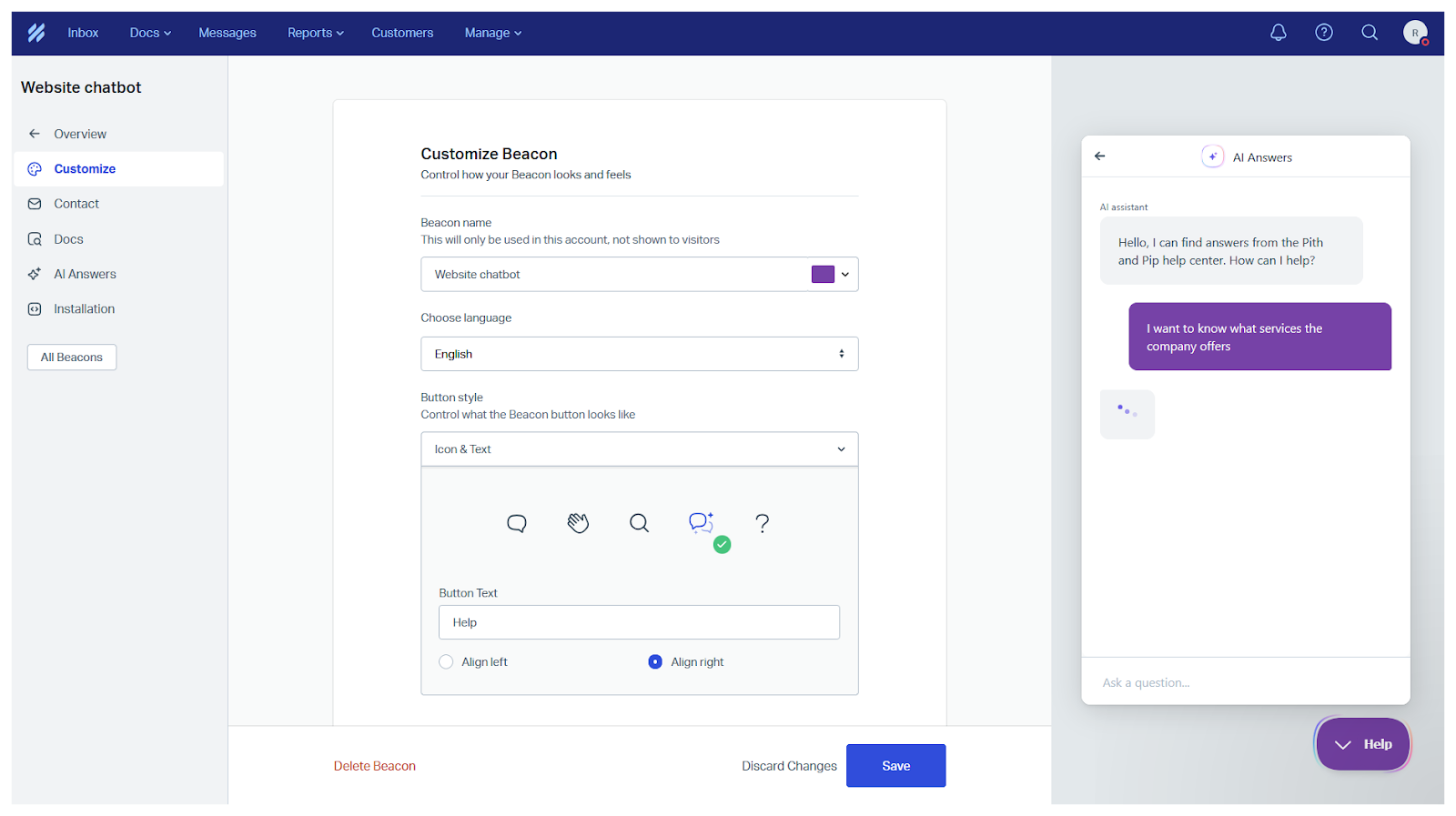 Like Jotform, Help Scout offers a free chatbot builder with no expiration end date. You can build and brand a Beacon for your website without feeling rushed or locked in, an attractive addition to an already excellent looking chatbot.