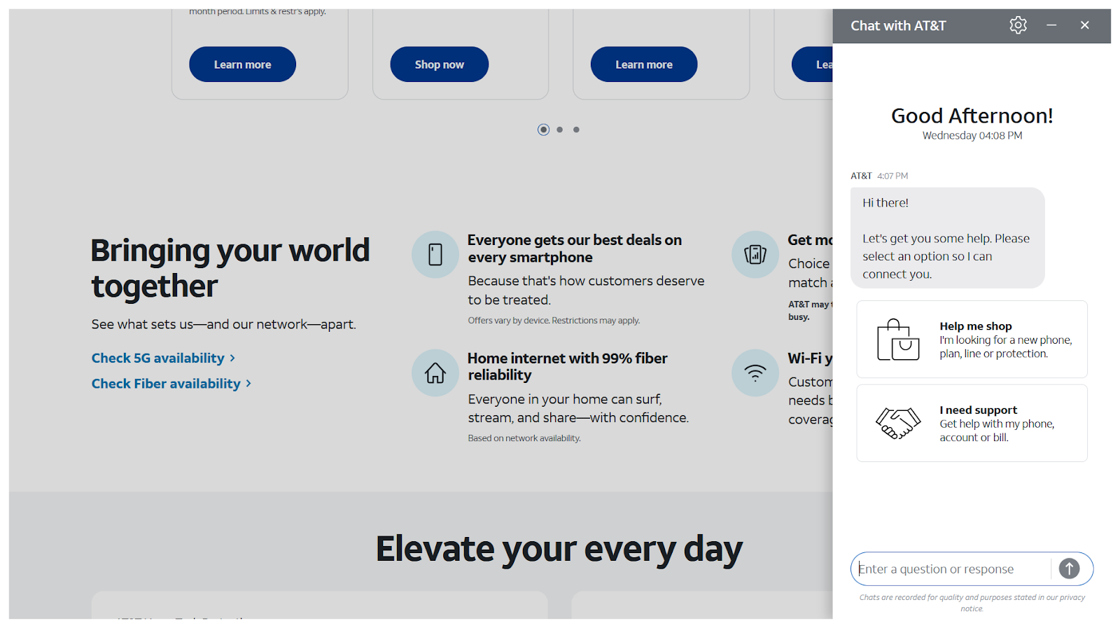 AT&T’s AI bot was one of the only ones we found that lets users change the window’s font size. That, combined with almost every response or suggestion showing up as a button with hover effects, make it one of the most legible and accessible examples on this list.