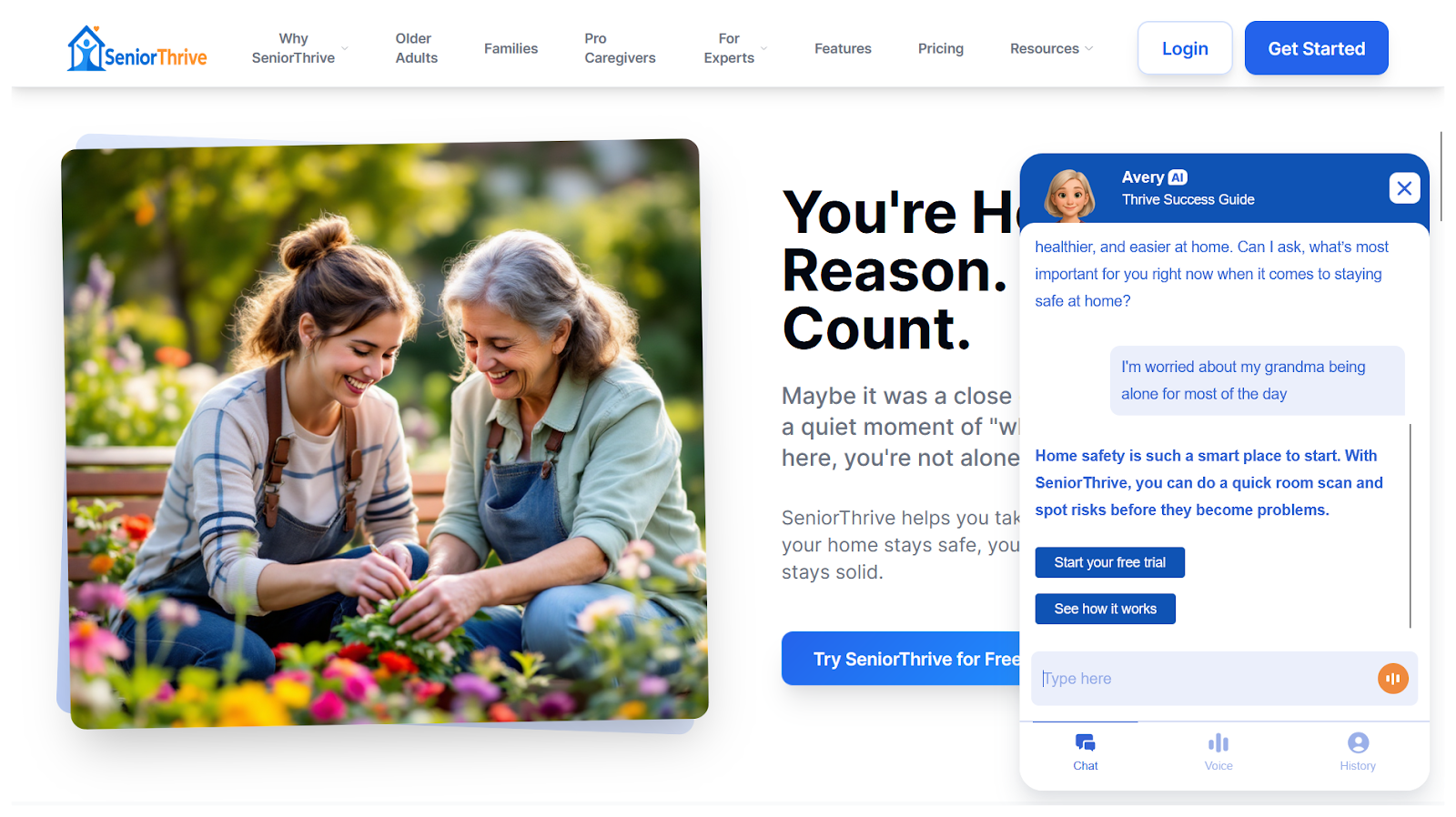 As one of the smaller-scale websites on this list, SeniorThrive is a superb example of how you don’t need a massive budget to roll out AI agents that look and perform on par with something from a Fortune 500 company.