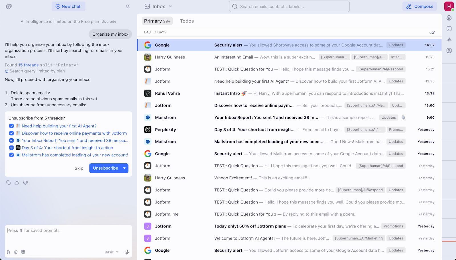 Unlike some other AI email apps, Shortwave has a free plan so you can check it out with no commitment required. It’s more limited than the paid plans — the AI can only work with a handful of emails at once — but it should give you a good idea of what Shortwave is capable of doing.