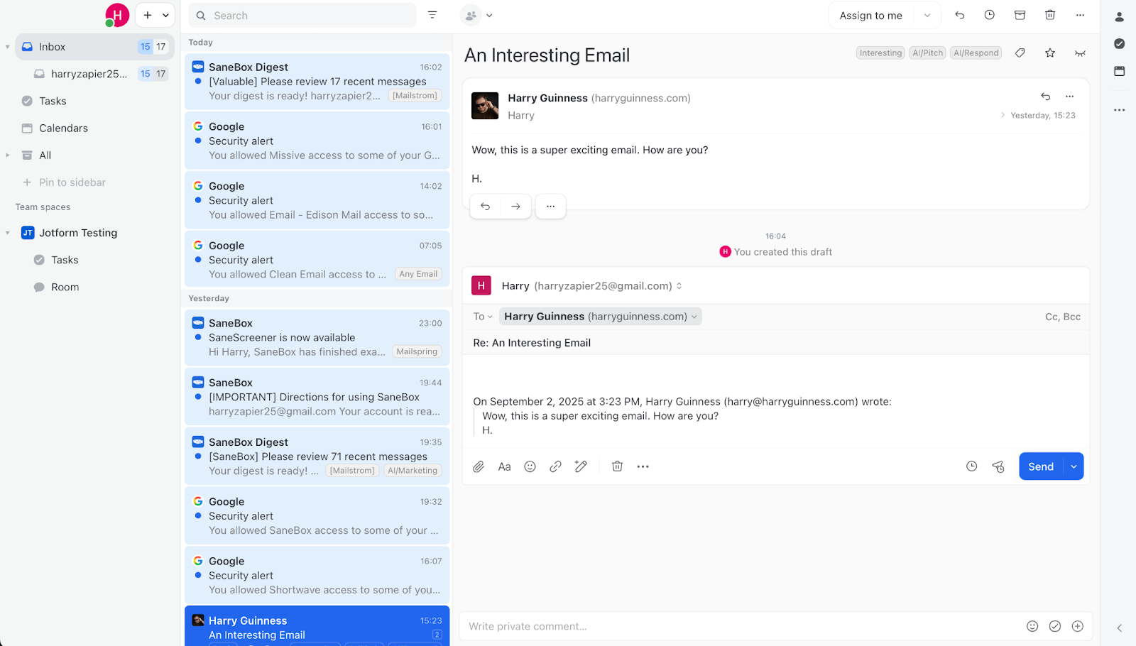 Classic email sorters like SaneBox and Clean Email do a good job of broadly automating your email inbox to make your life easier, but only options like Jotform Gmail Agent combine AI intelligence with human review. This ensures your email automations are efficient, provides transparency so you can trust they are working as intended, and supercharges your communication — while always keeping your messaging on-brand.