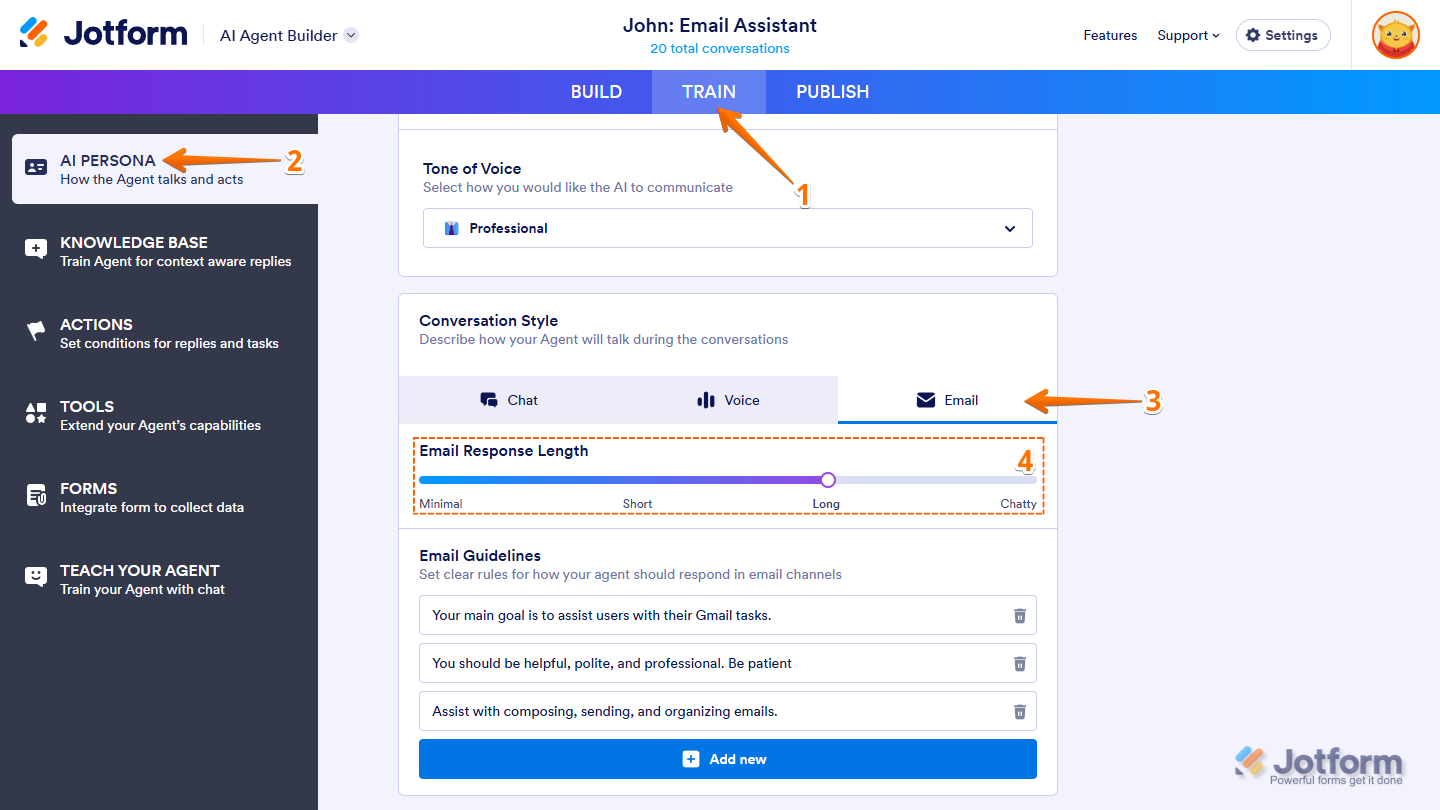 1. Jotform Gmail Agent: Best for AI-powered Gmail support