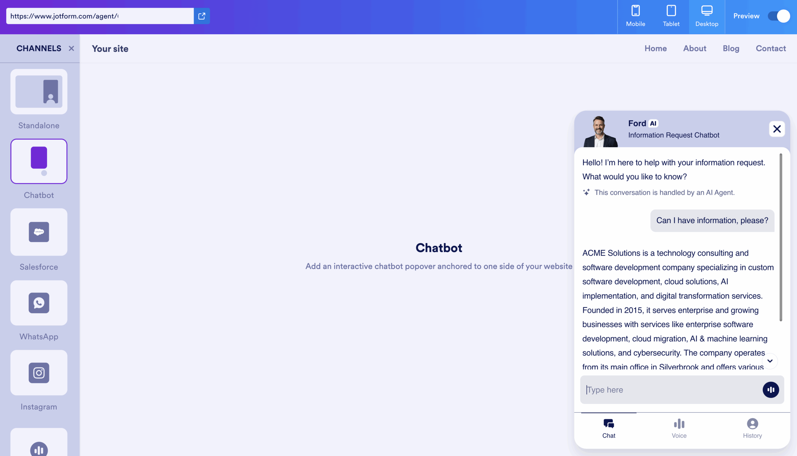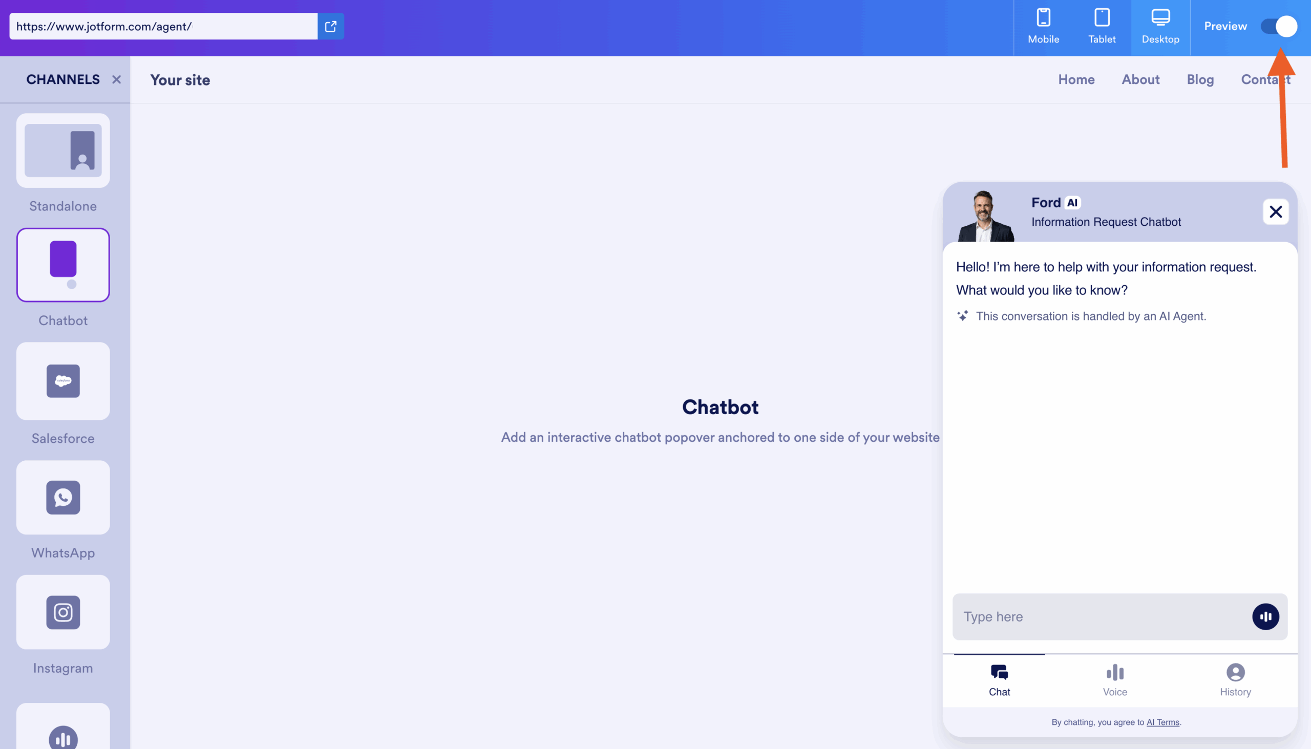 Jotform AI Agents’ convenient Jotform AI Chatbot Builder makes chatbot testing easy.