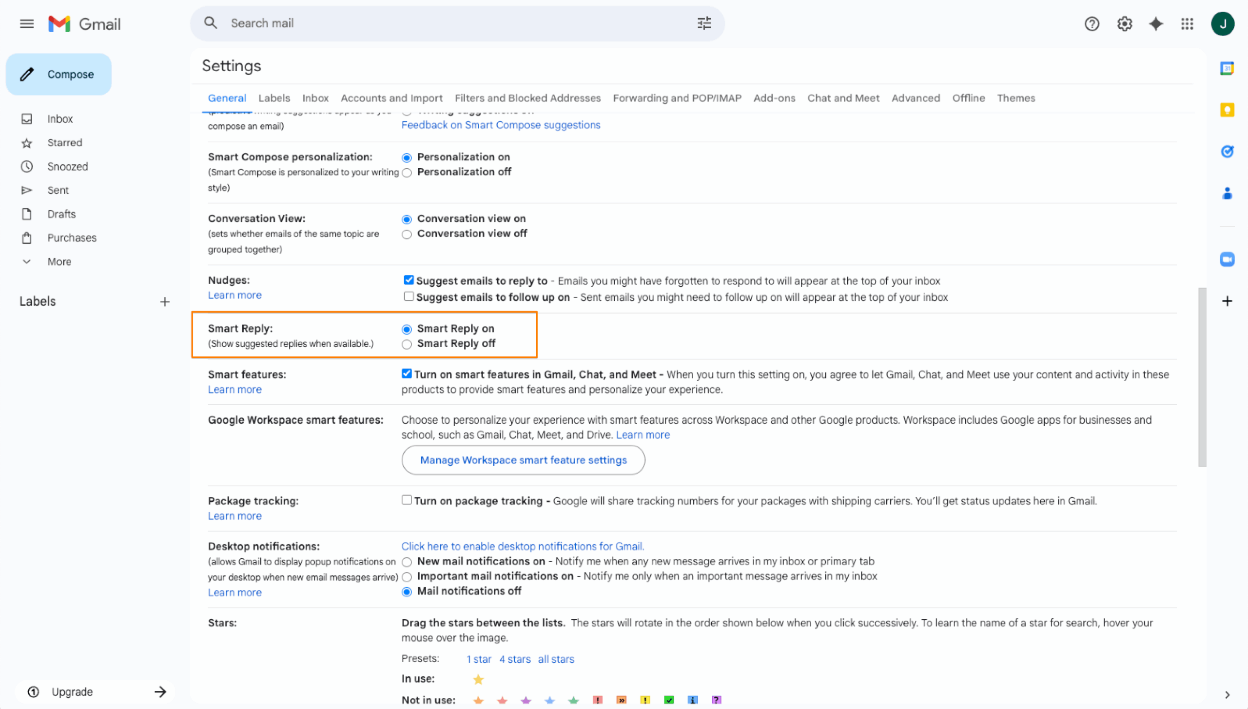 While you can scroll by the Smart Reply suggestions at the bottom of your email, it’s also easy to accidentally click on them, and they may distract you from the reply that you’ve already started to think about writing. Once you’re logged into your Gmail inbox in your browser, follow these steps to turn Gmail Smart Reply off:
