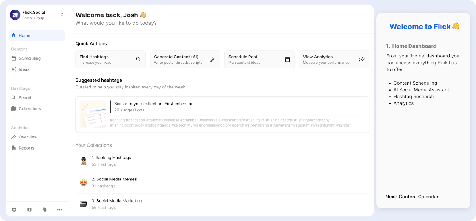 Flick is a comprehensive AI-powered social media platform for content creation, scheduling, hashtag strategy, analytics, and audience engagement. At its core is Iris, Flick’s AI social media assistant, which helps you brainstorm content ideas, write captions, and even build a tailored content strategy based on your brand’s voice. Use it to plan your posts with a visual content calendar, schedule them, and preview how your Instagram feed will look in grid view. Although Flick connects with other platforms, it provides analytics insights for Instagram only. You can track metrics on engagement, hashtag performance, and best posting times to help refine your strategy. Iris is designed to adapt to your brand voice and preferences, so you can define tone of voice, words to avoid, and style to ensure every AI output aligns.