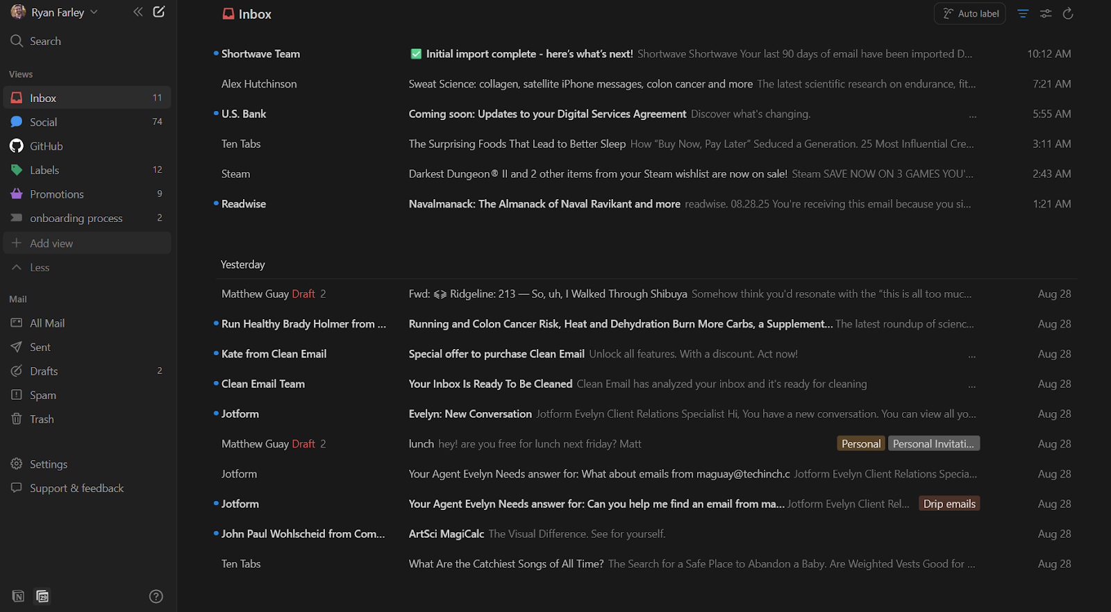 Our favorite AI features during testing were Auto Drafts and Auto Labels. Auto Drafts are AI-written responses generated after an email sits in your inbox too long without any action. Auto Labels works exactly as you’d expect it to, albeit noticeably better than in most other apps. The Auto Label Library contained more nuanced labels than what we saw elsewhere and had a straightforward interface for creating custom Auto Labels.