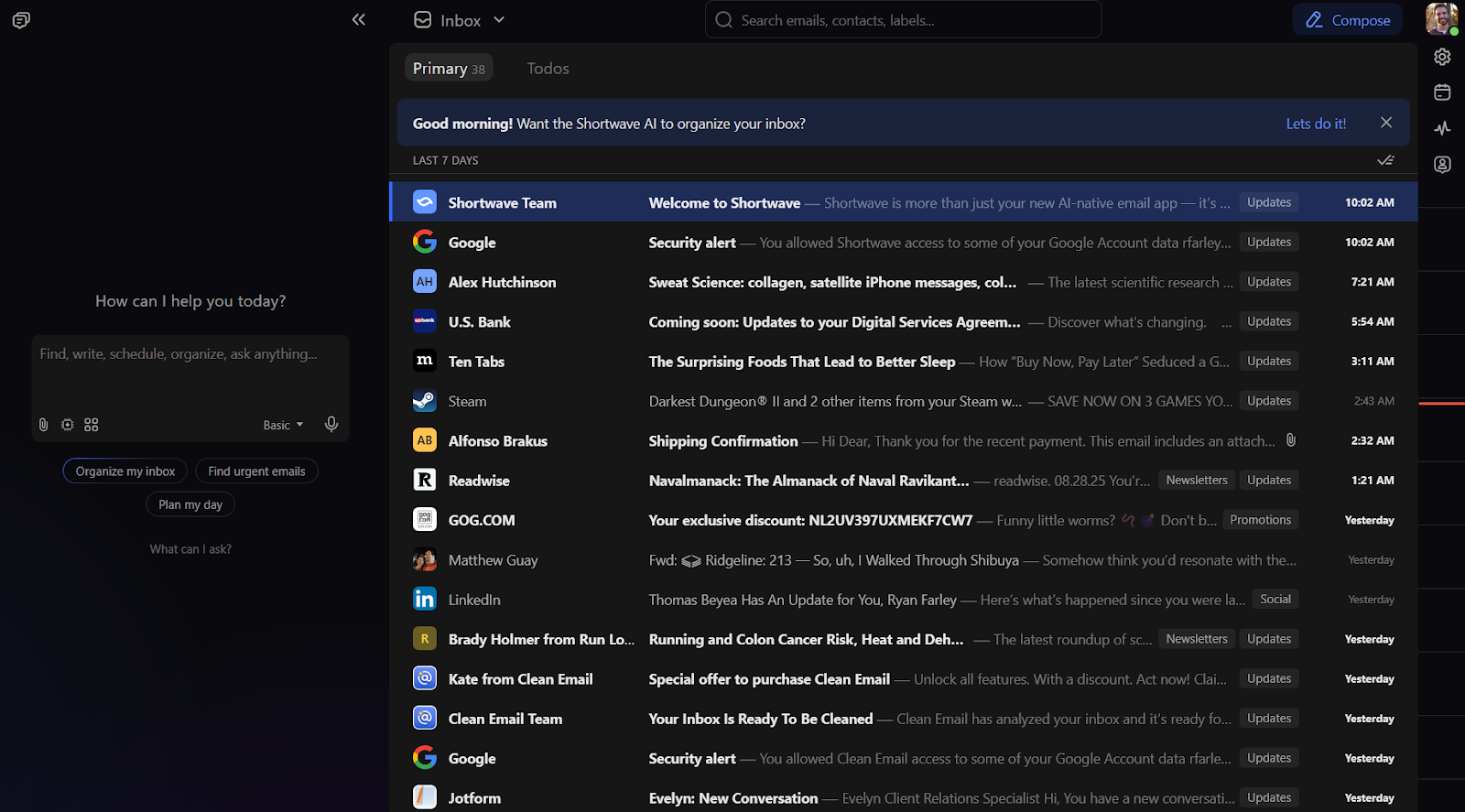 The pitch for Shortwave is simple: It’s Anthropic’s Claude chatbot connected to your Gmail account with some quality-of-life features layered on top. You can ask questions and make requests in plain language with prompts like, “What was the last email Matt sent me?” or “Politely decline this invitation.” There are also the Claude-powered “Organize my inbox” and “Plan my day” buttons. But Shortwave has a lot more under the hood than basic chatbot conversations with your emails.