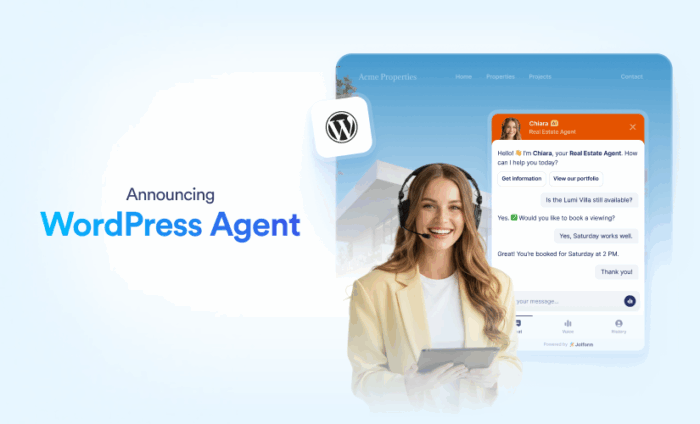 Today, those WordPress sites can directly integrate Jotform AI Agents into their websites via a new AI-powered plugin, the WordPress Agent. The plugin is a faster, friendlier way to support site visitors, answer questions, and increase conversions.