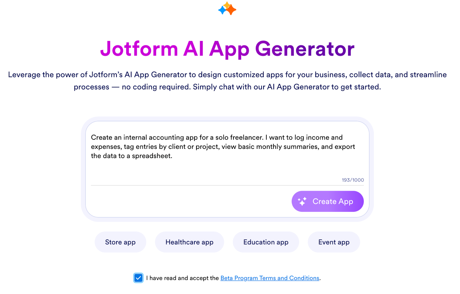 Yes, you’re reading a Jotform blog post. And yes, the Jotform AI App Generator is a Jotform product. But I wouldn’t include it if it didn’t hold its own.