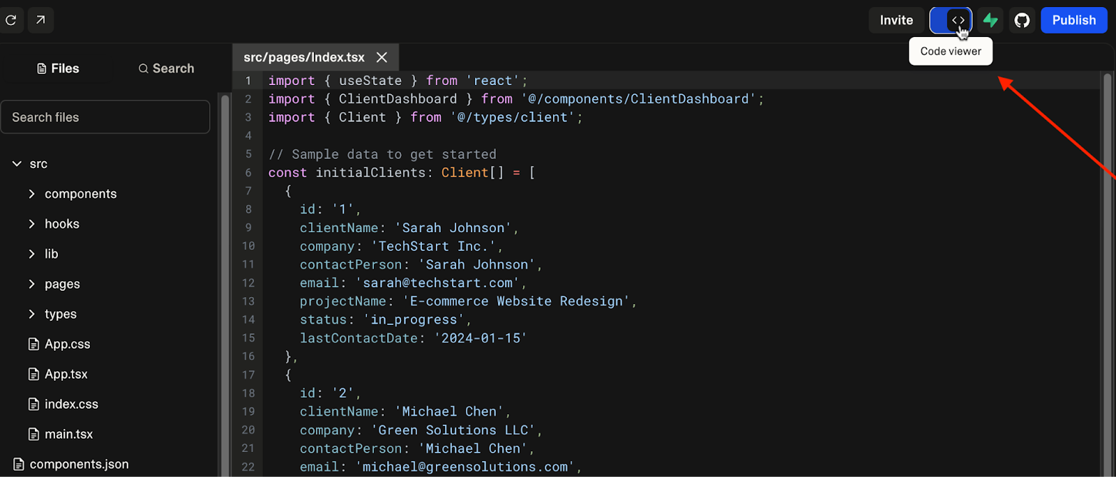 - Based on your input, it builds out the basic structure: forms, layout, logic, and navigation.