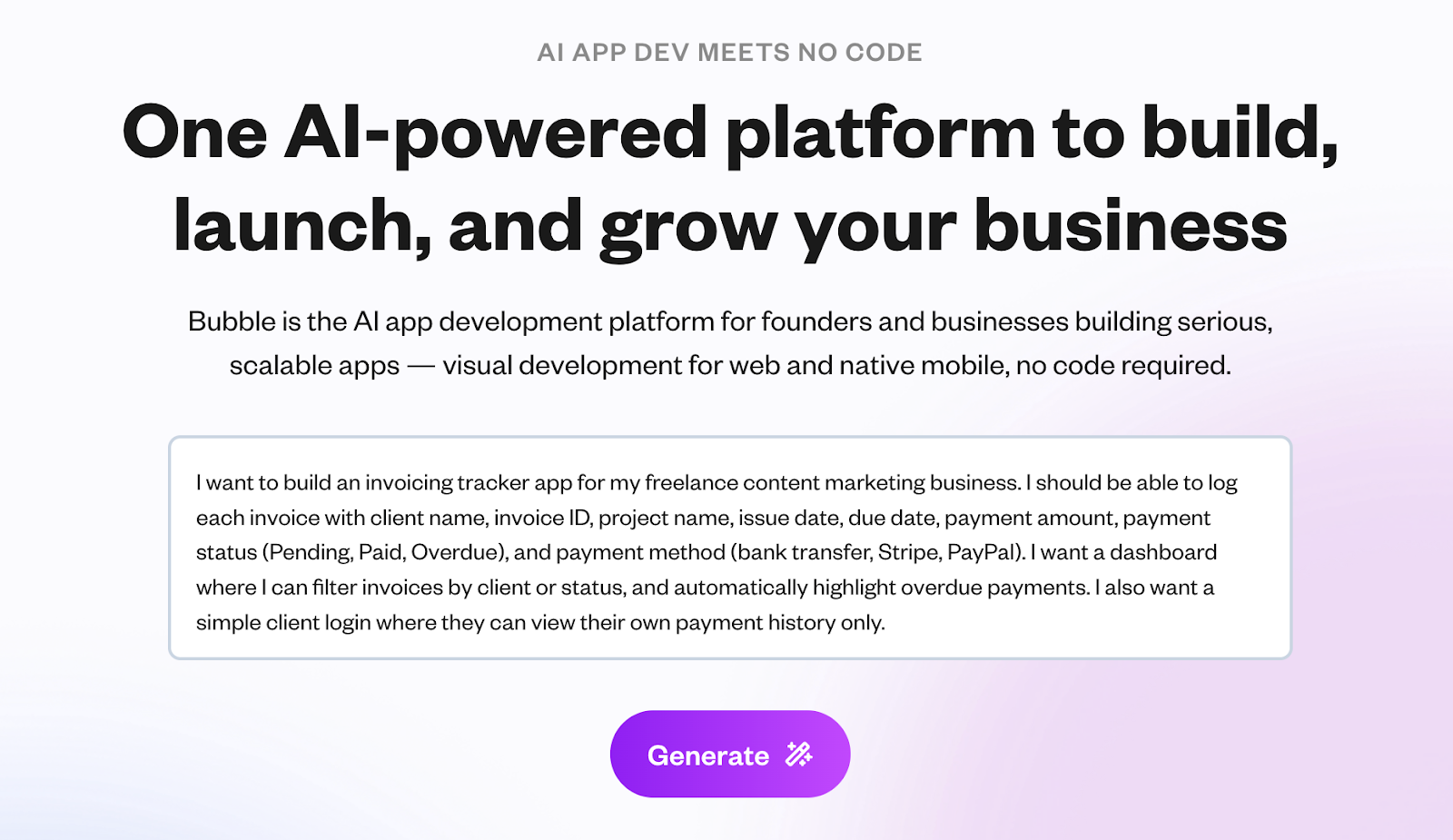 - Prompt-to-app generation: Instantly creates a functional app based on a simple written prompt.