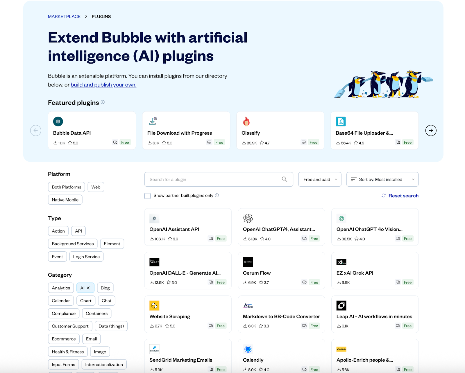 Softr plays nicely with dozens of tools across different categories: analytics (Google Analytics, Hotjar), payments (Stripe, PayPal), forms and email (Typeform, Mailchimp), chat (Intercom, Drift), media (YouTube, Pexels), compliance (iubenda), AI (OpenAI), and automation (Zapier, Make). You can even request new ones or hook in via API.