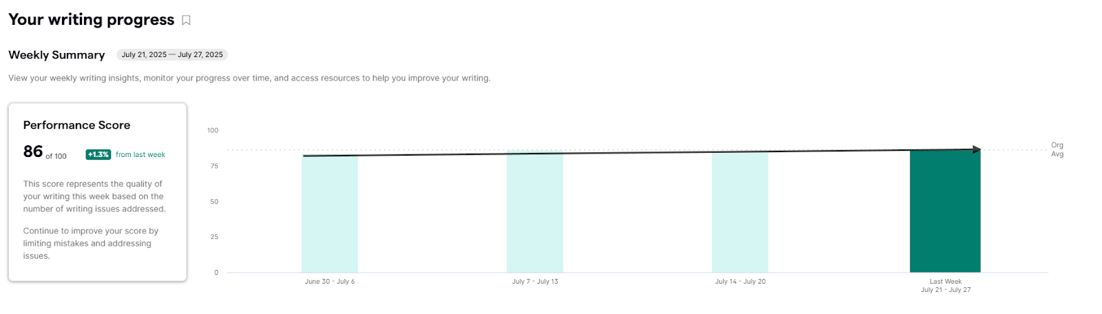 Unfortunately, you can’t see improvements over extended periods of time. I’ve been using Grammarly for years, and I wish I could see how things have changed since I first started using it. I genuinely feel like Grammarly’s writing AI has changed my writing for the better.