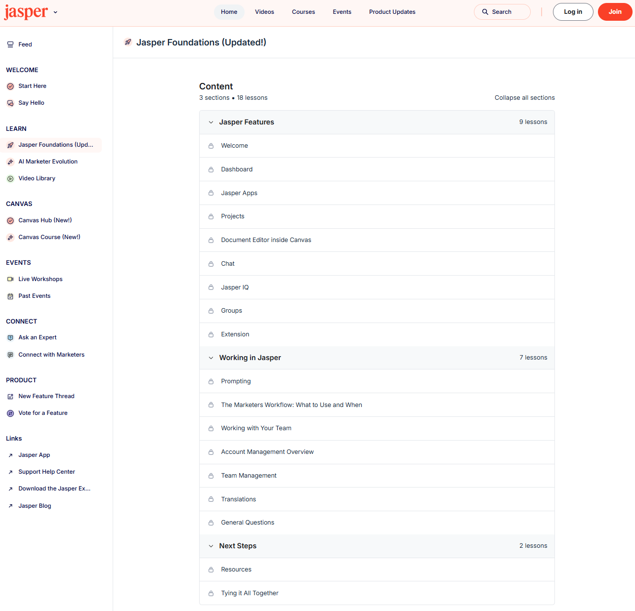 With extensive training resources that include a Jasper foundation course, it’s easy to learn how to use Jasper AI to the fullest. Here’s a screenshot that shows what the training looks like: