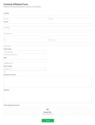 This AI Agent aims to simplify the submission of criminal affidavits by collecting necessary information such as full name, address, phone number, email, date of incident, incident description, and supporting documents. It helps organizations optimize their data collection processes, reducing errors and improving the overall experience for individuals submitting affidavits.