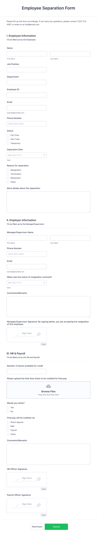This template is beneficial for HR professionals and managers involved in the employee separation process. It is particularly useful for organizations looking to enhance their HR operations. Key users include: