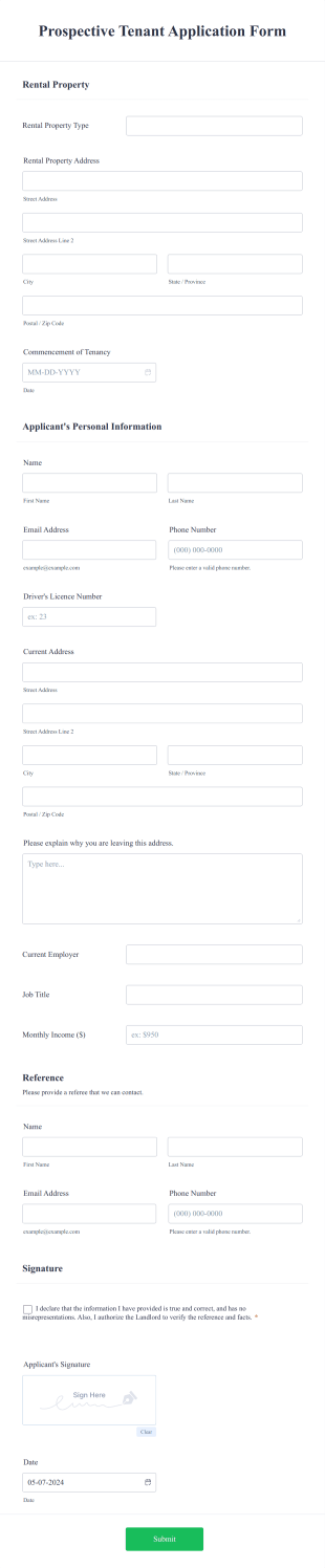 The Prospective Tenant Application AI Agent is a dynamic conversational assistant designed to simplify the application process for potential tenants. By engaging applicants through interactive dialogues, this AI Agent collects vital information including personal details, rental history, and references, ensuring a seamless experience for both landlords and tenants. This innovative approach transforms traditional form filling into an engaging conversation, ultimately enhancing the overall application process.