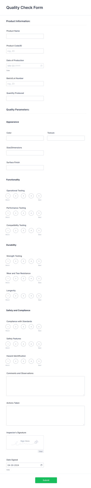 This template is ideal for various professionals involved in quality assurance and inspection processes. Organizations looking to enhance their quality control measures will find this AI Agent particularly beneficial. Potential users include: