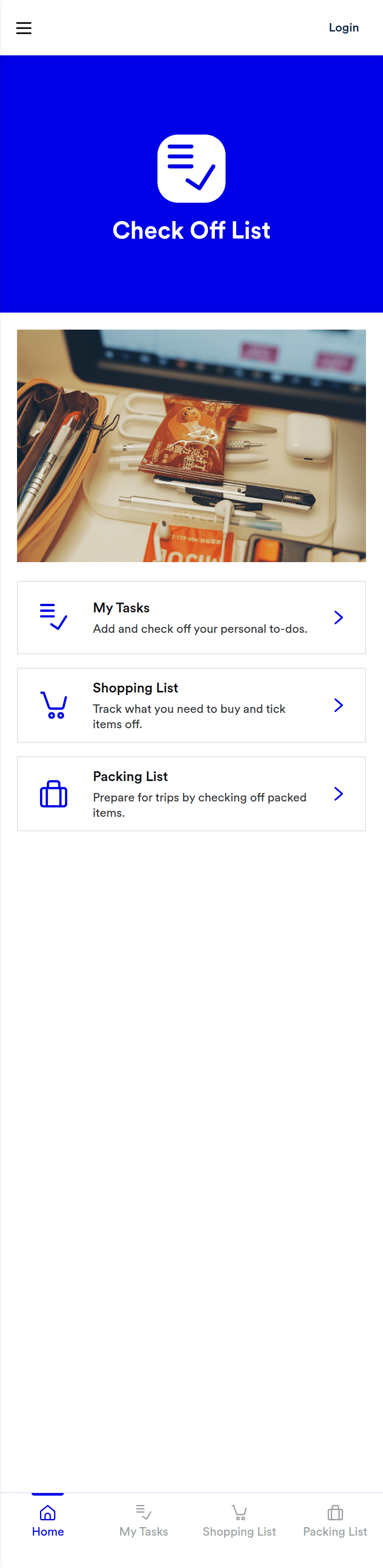 Check Off List App keeps everyday lists in one place so you can add items fast and check them off as you go. It works well for personal to-dos, a shared household shopping run, or trip prep when you need a packing list you can trust. With dedicated areas for My Tasks, Shopping List, and Packing List, this app template helps individuals, families, roommates, and small teams stay aligned on what still needs attention and what’s already done.