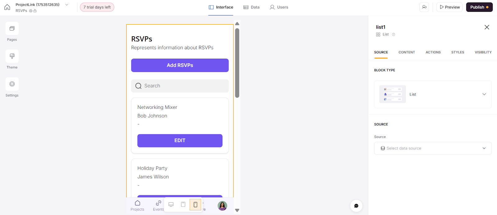 I used Softr’s block editor to build a responsive RSVP app and enjoyed the intuitive interface that allowed me to drag and drop static and dynamic blocks.