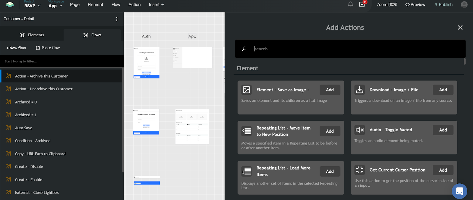 Once the base of the app was built, I was able to customize the backend logic, update the data types, and create complex workflows. The element tree also made it easy to find and edit front-end elements, like headers and page titles.