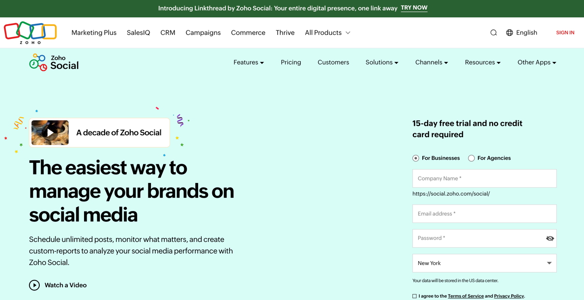 Zoho Social is a full-spectrum social media management tool for solo marketers and growing agencies alike. It offers scheduling, multi-channel publishing, social listening, reporting, analytics, and more advanced governance workflows as you move to higher-tier plans. If you manage multiple brands or want robust inbox workflows, Zoho Social may be just what you need.