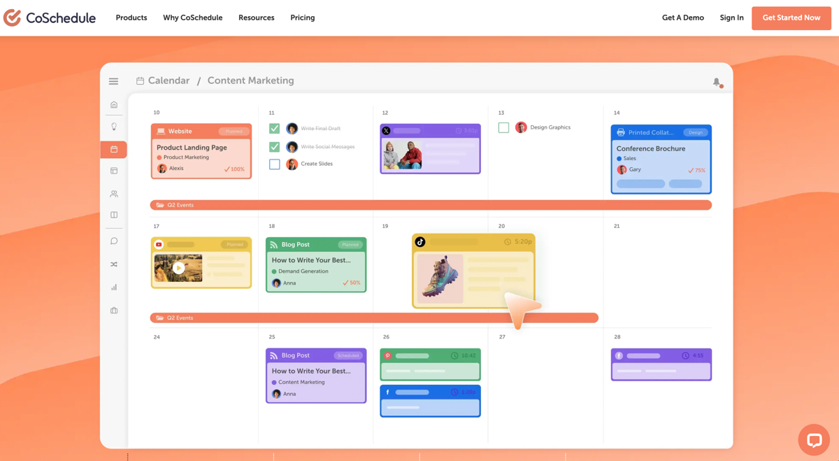 - Pros: Centralized calendar and content and social scheduling in a single interface; automation features save valuable time; strong collaboration and organizational features