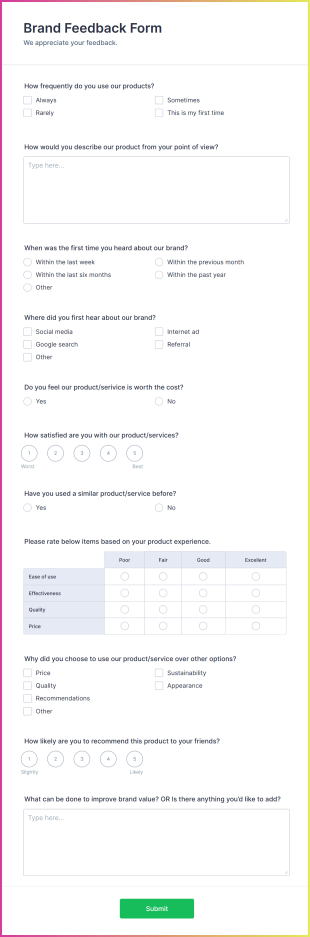 The Branding Template is a comprehensive board template designed for marketing teams and brand managers who aim to enhance their brand perception through structured feedback analysis. Ideal for teams looking to analyze customer insights, this template facilitates the collection and evaluation of feedback data, helping users identify trends and implement necessary changes. By using this template, teams can effectively track tasks such as analyzing feedback trends, preparing reports on brand perception, and conducting follow-up surveys, ensuring a systematic approach to brand improvement.