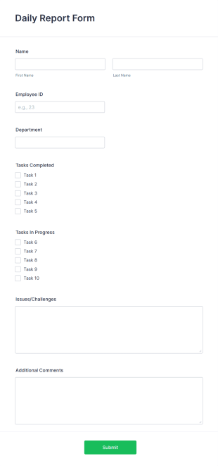 Utilizing Jotform Boards, this customizable board allows users to manage tasks efficiently with a drag-and-drop interface. You can connect your forms to the board to automate task creation from submissions, enhancing workflow automation. The visual Kanban board format makes it easy to organize tasks by status, assign responsibilities, and communicate through comments. This digital collaboration tool ensures your team stays aligned and focused on daily objectives, boosting overall performance.