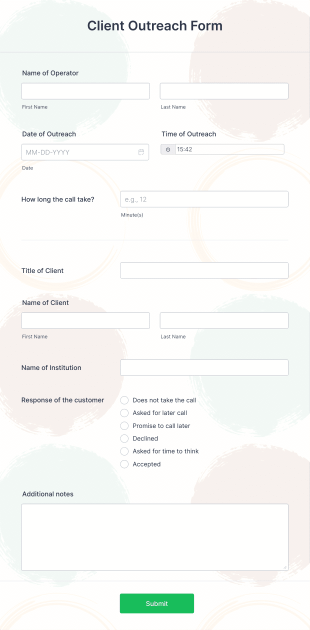 This template helps improve organization and efficiency in client outreach, allowing users to prioritize tasks, track progress, and collaborate effectively. It enhances accountability and ensures that all outreach activities are documented and monitored.