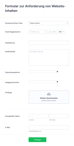 Ein Anforderung von Website-Inhalten KI-Agent ist ein interaktiver Assistent, der entwickelt wurde, um Unternehmen bei der Erfassung von Informationen über ihre Website-Inhalte zu unterstützen. Dieser KI-Agent ermöglicht es den Kunden, ihre Anforderungen durch eine freundliche, gesprächsbasierte Schnittstelle zu übermitteln, wodurch der Prozess der Informationssammlung vereinfacht und effizienter gestaltet wird.