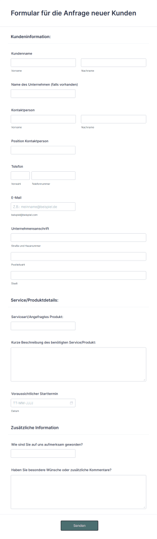 Ein Anfrage neuer Kunden AI Agent ist ein interaktiver Assistent, der Unternehmen dabei unterstützt, Informationen von neuen Kunden durch ansprechende Gespräche zu sammeln. Dieser AI Agent erfasst wichtige Details wie den Namen des Kunden, Kontaktdaten und spezifische Anforderungen, wodurch der Anfrageprozess erheblich vereinfacht wird. Unternehmen können so ihre Abläufe optimieren und gleichzeitig eine positive Kundenerfahrung schaffen.