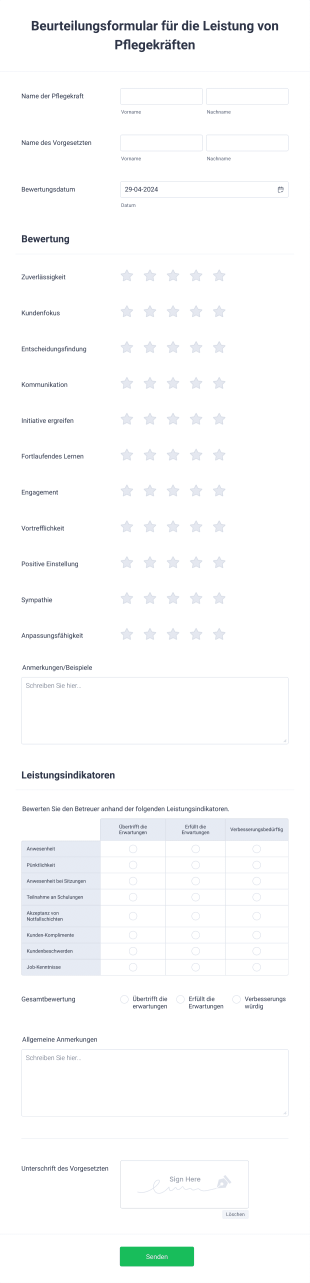 Beurteilungsformular für die Leistung von Pflegekräften AI Agent