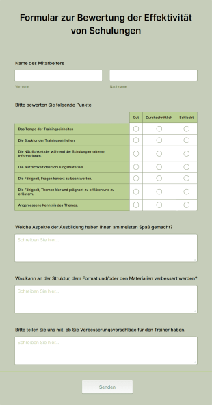 Diese Vorlage ist ideal für Unternehmen und Organisationen, die regelmäßig Schulungen anbieten und die Effektivität dieser Programme bewerten möchten. Die Hauptnutzer könnten umfassen: