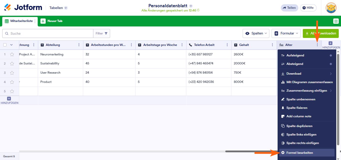 Um Ihre Formel zu aktualisieren, öffnen Sie das Spaltenmenü und wählen Sie dann Formel bearbeiten.