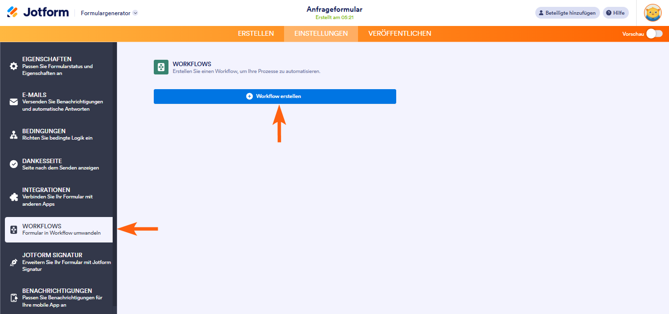 So erstellen Sie einen Workflow mit Ihrem Formular