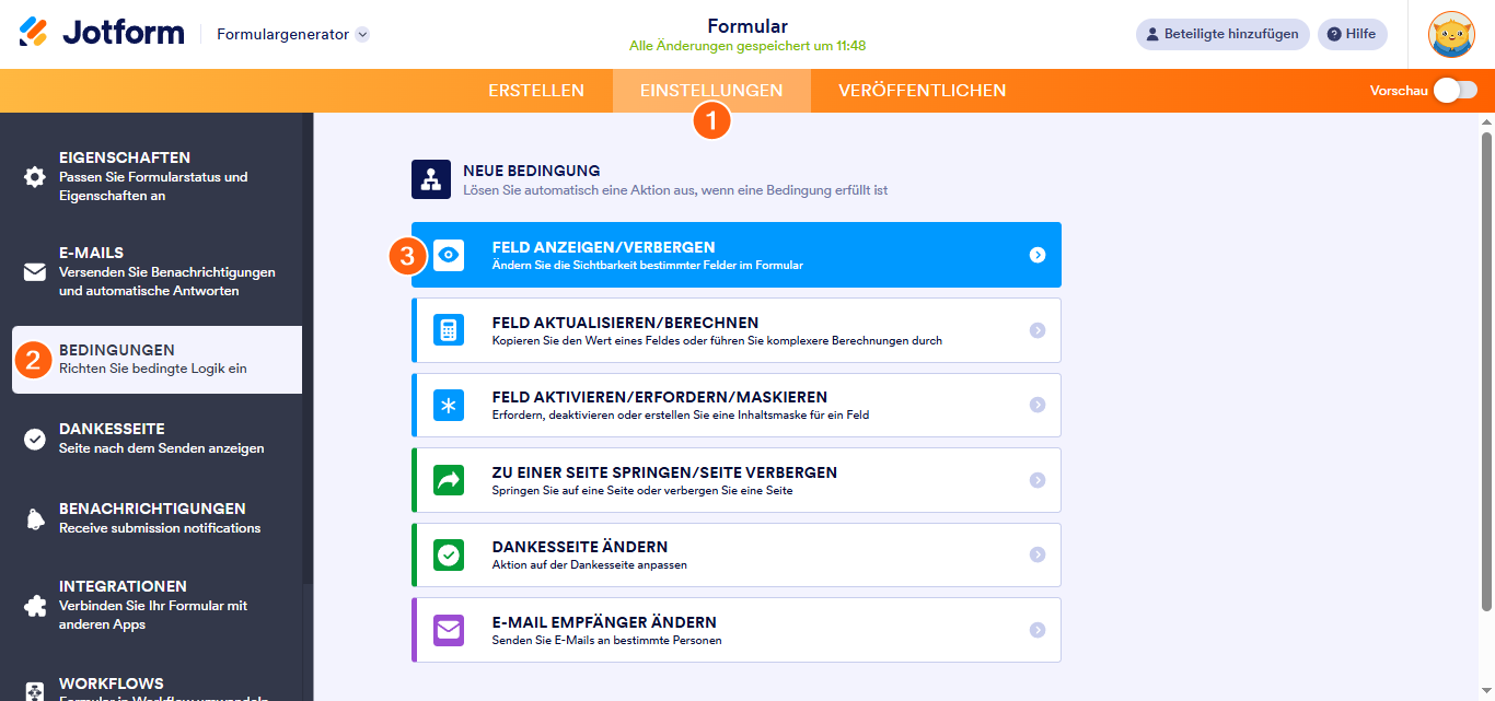 Testen Sie unser Demoformular hier: https://www.jotform.com/213451765769063.