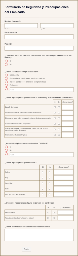 Un Agente de IA de Seguridad y Preocupaciones del Empleado es un asistente interactivo diseñado para ayudar a las empresas a gestionar las preocupaciones de sus empleados en relación con la seguridad y la salud. Este agente recopila información crucial sobre factores de riesgo y medidas de prevención a través de un formato conversacional, facilitando la comunicación entre los empleados y la administración. La implementación de este agente no solo mejora la satisfacción de los empleados, sino que también permite a las empresas tomar decisiones informadas para mejorar la seguridad en el lugar de trabajo.