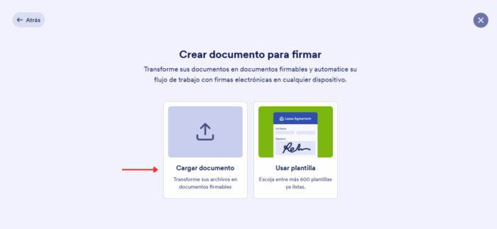 2. Haga clic en Firma electrónica y Cargar documento.