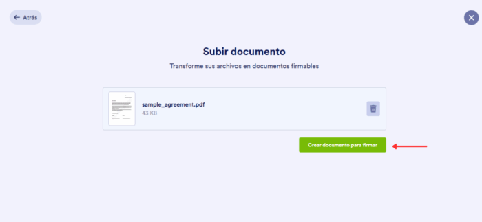 4. Haga clic en el botón Crear documento para firmar.