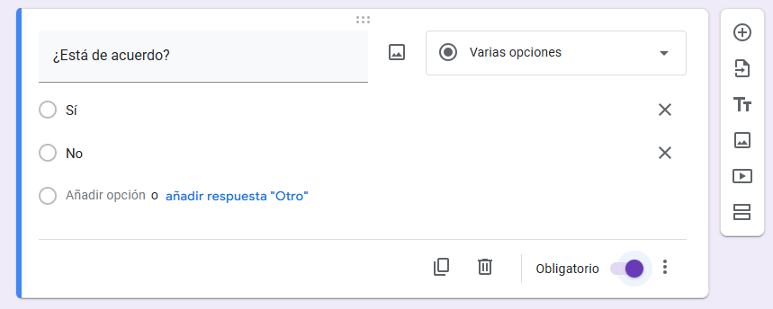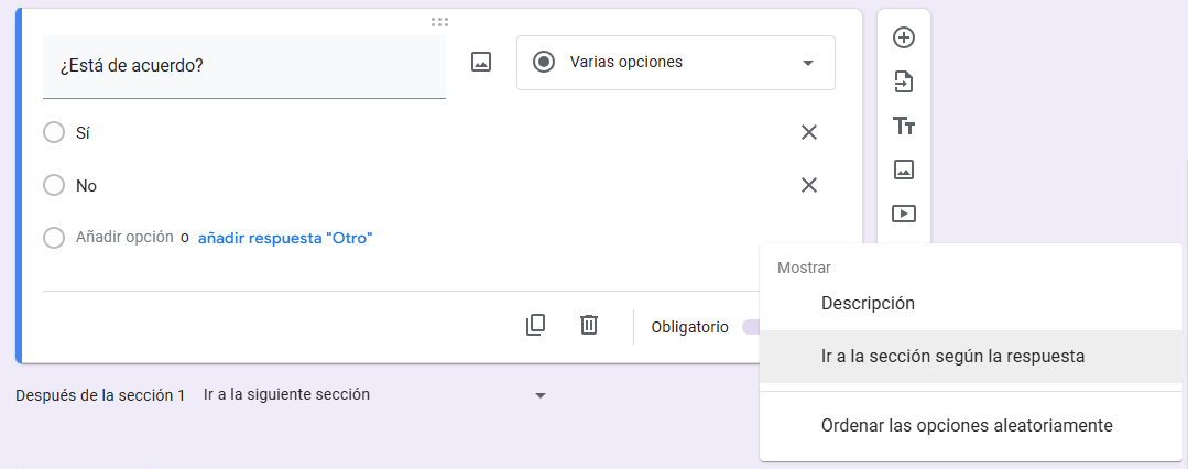 - Asegúrate de activar el botón Obligatorio para que los usuarios tengan que responder antes de continuar.